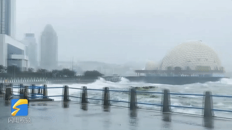今年第9号台风“利奇马”在穿过浙江、江苏和黄海西部海域后,于昨晚(11日)在山东省青岛市黄岛区沿海再次登陆,登陆时中心附近最大风力9级。