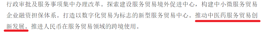 《中国(江苏)自由贸易试验区总体方案》提出,推动中医药服务贸易创新发展。